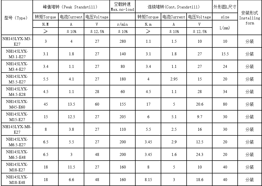 | NH145LYX系列直流力矩電機 |